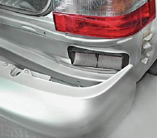 Предупреждение! Выполняя следующую операцию, не отводите бампер далеко от кузова, чтобы не повредить электропроводку фонарей освещения номерного знака. 3. Аккуратно, стараясь не повредить окраску кузова, одновременно с двух сторон сдвигаем бампер назад и снимаем с кронштейнов.