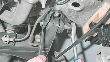 4. Устанавливаем рычаг в кронштейн кузова и фиксируем его болтом с гайкой, не затягивая ее. Замечание: Болт крепления рычага вставляется в кронштейн кузова со стороны порога автомобиля. 5. Вставляем в серьгу упругий рычаг регулятора давления и фиксируем его стопором (см. "Регулятор давления жидкости в задних тормозных механизмах - снятие и установка"). 6. Закрепляем в кронштейнах трос ручного тормоза. 7. Устанавливаем колесо и снимаем автомобиль с подставок. 8. Несколько раз нажимаем на заднюю часть автомобиля для самоустановки подвески. 9. Окончательно затягиваем гайку болта крепления рычага моментом 66,6-82,3 Н·м (6,8-8,4 кгс·м). 10. Сайлент-блок второго рычага заменяем аналогично. |