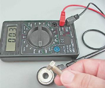 2. Металлическим предметом (болтом, отверткой) слегка постукиваем по датчику, при этом на вольтметре должны наблюдаться скачки напряжения. Неисправный датчик не реагирует на удары. В этом случае заменяем его.
