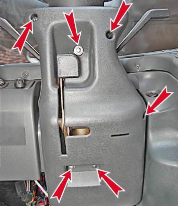 7. Снимаем верхнюю накладку рулевой колонки.