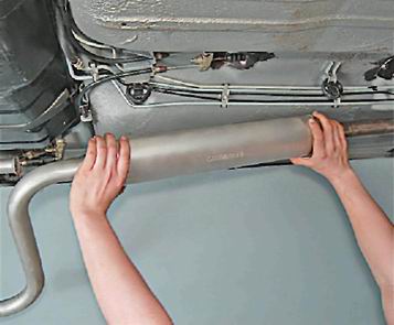 Установка Устанавливаем дополнительный глушитель в обратной последовательности. Поврежденные подушки подвески дополнительного глушителя заменяем. |