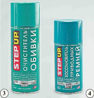 3. Препарат для ухода за обивкой салона и багажного отделения. 4. Препарат для ухода за ремнями привода ГРМ и генератора.