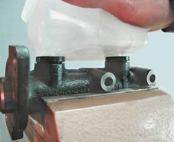 Установка 1. Собираем и устанавливаем главный тормозной цилиндр в обратной последовательности. Перед установкой бачка на новый тормозной цилиндр смачиваем патрубки бачка чистой тормозной жидкостью. Штуцера тормозных трубок затягиваем специальным ключом. 2. Заполняем бачок свежей тормозной жидкостью и прокачиваем гидравлический привод тормозной системы (см. "Гидравлический привод тормозов - прокачка"). 3. Проверяем отсутствие утечек жидкости в местах подсоединения тормозных трубок к главному тормозному цилиндру. |