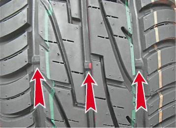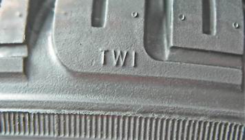 Выступы имеют высоту 1,6 мм. Как только высота протектора сравняется с высотой выступа, шина подлежит замене. Индикаторы расположены по всей окружности шины на некотором расстоянии друг от друга. Находим их по условным обозначениям в виде букв "TWI" или стрелкам "▲" на боковине шины.