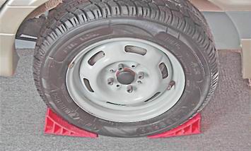 Колесо - заменаДля выполнения операции потребуются: - "баллонный" ключ или торцовый ключ на 17 мм (на 19 мм для автомобилей ранних выпусков); - домкрат; - противооткатные упоры; - опора под домкрат (если машина стоит на рыхлом грунте). Последовательность выполнения 1. Устанавливаем автомобиль, по возможности, на ровной горизонтальной площадке. Если в салоне автомобиля находятся пассажиры, то их следует высадить. 2. Вынимаем из багажного отделения запасное колесо и необходимый инструмент. 3. Фиксируем автомобиль стояночным тормозом и устанавливаем под колесо, расположенное по диагонали от заменяемого, с двух сторон противооткатные упоры.