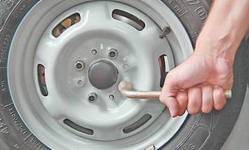 4. "Баллонным" или торцовым ключом ослабляем затяжку всех болтов крепления колеса приблизительно на пол-оборота.