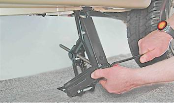 Предупреждение! Если автомобиль стоит на рыхлом грунте, подложите под домкрат опору, увеличивающую устойчивость домкрата (например доску подходящего размера). 5. Устанавливаем под порог автомобиля домкрат. При этом нижняя опорная площадка домкрата должна находиться строго под верхним упором.