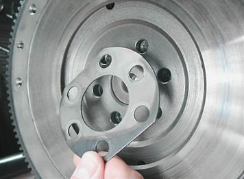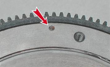 Маховик должен быть установлен на коленчатый вал только в одном положении. Если сделанная метка стерлась, маховик можно установить на вал по заводской метке - для этого на наружной стороне маховика высверлена лунка. При установке маховика на коленчатый вал, метка должна располагаться напротив шатунной шейки четвертого цилиндра. Не перепутайте метку с балансировочными лунками, которые сделаны сверлом большего диаметра