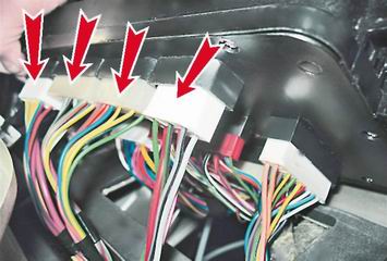 5. Снимаем монтажный блок. Установка Устанавливаем монтажный блок в обратной последовательности, при этом колодку красного цвета подсоединяем к гнезду выводов, помеченному красной меткой. |