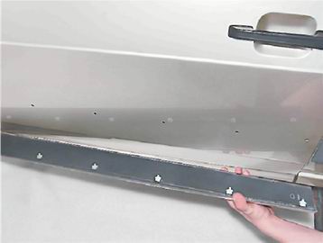 3. Пассатижами сжимаем усики шести пластмассовых держателей накладки двери (расположение держателей для наглядности показано на снятой накладке) (см. "Накладка переднего крыла - снятие и установка").