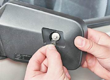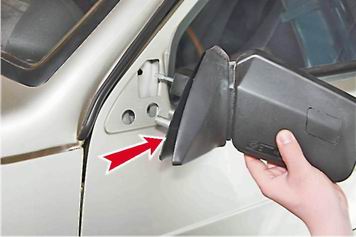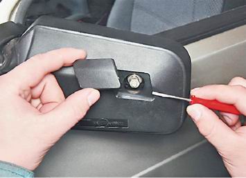 Наружное зеркало заднего вида - замена отражающего элемента, снятие и установкаЗамена отражающего элемента 1. Подготавливаем автомобиль к выполнению работы (см. "Подготовка автомобиля к техническому обслуживанию и ремонту"). 2. Поддеваем отверткой и снимаем заглушку.