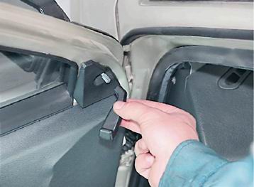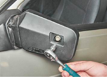 6. Устанавливаем новый отражающий элемент в обратной последовательности. Снятие зеркала 1. Подготавливаем автомобиль к выполнению работы (см. "Подготовка автомобиля к техническому обслуживанию и ремонту"). 2. Потянув на себя, снимаем рукоятку управления зеркалом.