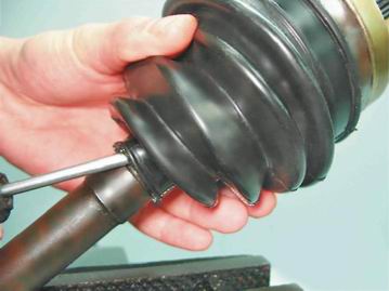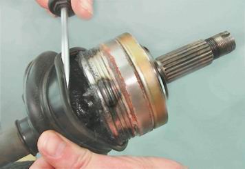 4. Таким же способом снимаем малый хомут защитного чехла наружного шарнира.