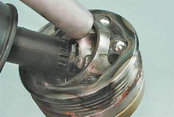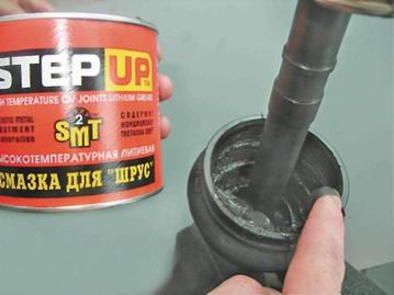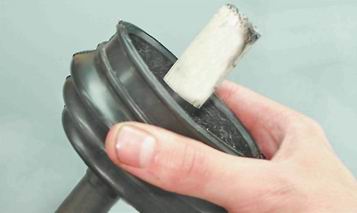 Предупреждение! Для наружного шарнира необходимо 40 см³ смазки. 7. Заполняем шарнир смазкой для шарниров равных угловых скоростей. Оставшееся от 40 см³ количество смазки закладываем в защитный чехол.