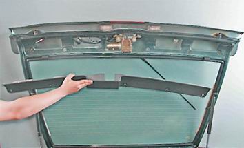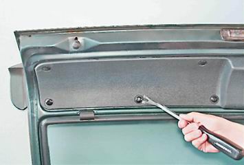 Обивка двери багажного отделения - снятие и установкаДля выполнения работы потребуется съемник держателей обивки. Рекомендация: Обивку двери удерживают десять пластмассовых держателей. При снятии держателей велика вероятность их поломки. Поэтому перед снятием следует запастись новыми держателями. Составной держатель (с фиксатором) надежнее, чем одинарный.