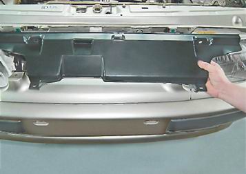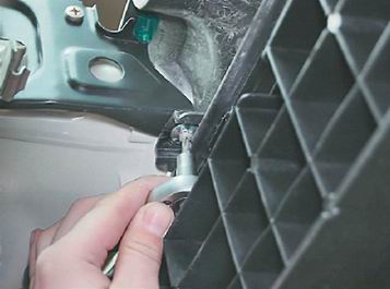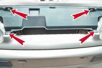 5. Крестовой отверткой отворачиваем два самореза крепления облицовки радиатора к двум кронштейнам (с правой и левой сторон облицовки).