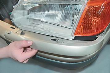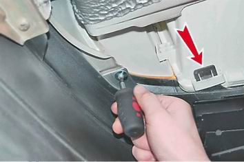 7. При необходимости снятия облицовок фар, снимаем подкрылок левого колеса (см. "Подкрылок переднего крыла - снятие и установка").