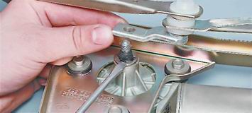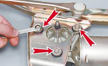 5. Накидным ключом на 10 мм отворачиваем три болта крепления мотор-редуктора к кронштейну стеклоочистителя.