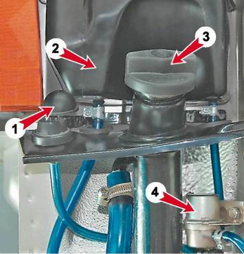 Расположение элементов системы улавливания паров топлива в задней части автомобиля: 1 - предохранительный клапан; 2 - сепаратор; 3 - пробка заливной горловины топливного бака; 4 - гравитационный клапан Примечание. На фото задний бампер Из сепаратора несконденсировавшие пары бензина по трубкам и соединительным шлангам поступают в адсорбер, который не дает парам попасть в атмосферу. Адсорбер - это емкость, где пары бензина поглощаются активированным углем. При работе двигателя с высокой частотой вращения коленчатого вала, ЭБУ подает сигнал на открытие клапана продувки адсорбера, и пары бензина всасываются в ресивер впускного модуля.