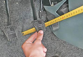 Педаль тормоза - проверка свободного ходаСвободный ход педали тормоза - это ход педали от ее верхнего положения до начала срабатывания тормозных механизмов. Он должен составлять 3-5 мм. Для выполнения работы потребуется линейка или рулетка. Последовательность выполнения 1. Подготавливаем автомобиль к выполнению работы (см. "Подготовка автомобиля к техническому обслуживанию и ремонту"). 2. Устанавливаем около педали линейку или рулетку и измеряем расстояние от пола до наружной поверхности педали тормоза. Нажимая педаль рукой, опускаем ее до тех пор, пока не почувствуем увеличение сопротивления движению педали и повторяем измерения. По разности полученных значений определяем свободный ход.