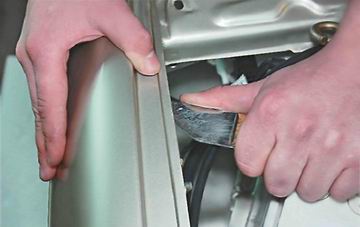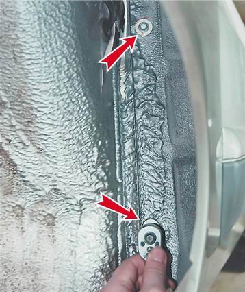 10. С внутренней стороны крыла отворачиваем два самореза крепления крыла к стойке...
