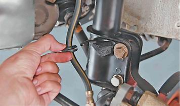 7. Вынимаем тормозной шланг из кронштейна стойки.