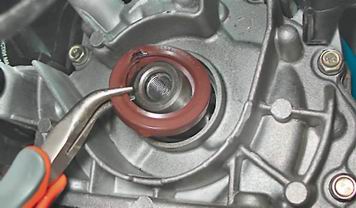 При извлечении сальника не поцарапайте рабочую поверхность коленчатого вала.