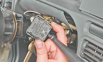Установка соединителя в сборе с переключателями 1. В произвольном порядке подсоединяем колодки двух проводов звукового сигнала к соединителю подрулевых переключателей. 2. Надеваем соединитель на рулевую колонку. 3. Слегка затягиваем стяжной болт крепления соединителя (так, чтобы положение переключателя можно было изменять усилием руки). Замечание: Необходимо установить соединитель подрулевых переключателей в такое положение, при котором центральный саморез крепления нижней накладки рулевой колонки можно было бы завернуть в соответствующее отверстие соединителя. 4. Устанавливаем нижнюю накладку рулевой колонки на место и крестовой отверткой заворачиваем два самореза крепления накладки к поперечине панели приборов. 5. Регулируем положение соединителя на рулевой колонке, добиваясь возможности заворачивания центрального самореза крепления накладки рулевой колонки в соответствующее отверстие соединителя. 6. Найдя оптимальное положение соединителя, выворачиваем два самореза и снимаем нижнюю накладку рулевой колонки. 7. Не смещая соединитель, затягиваем болт его крепления. 8. Дальнейшую работу выполняем в последовательности, обратной снятию. |