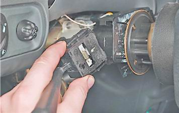 6. Отсоединяем две колодки жгутов проводов от подрулевых переключателей.