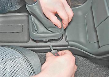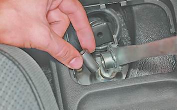 15. В салоне автомобиля извлекаем резиновый уплотнитель из отверстия в кузове автомобиля.