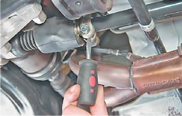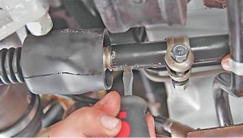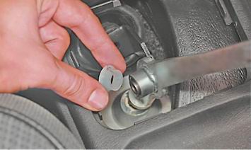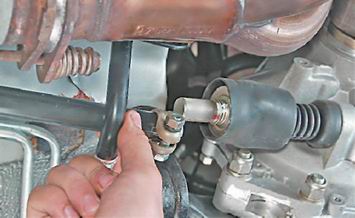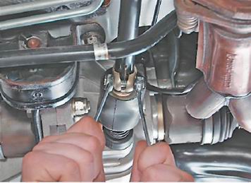 17. Из смотровой ямы снимаем тягу в сборе с уплотнителем.