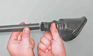 ...и, поворачивая рукоятку вправо-влево, стягиваем ее вверх в сборе с чехлом, а также снимаем с рычага полиэтиленовую трубку и поролоновое кольцо.