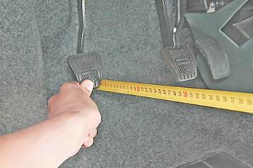 Привод выключения сцепления - регулировкаЕсли рабочий ход педали сцепления отличается от указанного на рисунке (см. рис. "Сцепление"), необходимо отрегулировать длину троса. Для выполнения работы потребуется линейка или рулетка. Проверка 1. Подготавливаем автомобиль к выполнению работы (см. "Подготовка автомобиля к техническому обслуживанию и ремонту"). 2. Линейкой или рулеткой измеряем расстояние от пола до наружной поверхности педали сцепления.