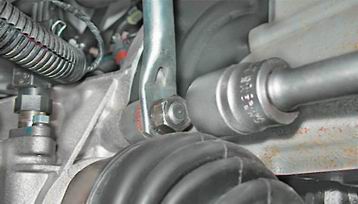 Прокладка впускного трубопровода и выпускного коллектора - заменаДля выполнения работы потребуется смотровая яма или эстакада. Снятие 1. Подготавливаем автомобиль к выполнению работы и отсоединяем аккумуляторную батарею (см. "Подготовка автомобиля к техническому обслуживанию и ремонту"). 2. Снимаем приемную трубу (см. "Приемная труба - снятие, замена прокладки и установка"). 3. Ключом на 17 мм отворачиваем гайку нижнего крепления левой штанги (гайка расположена над правым приводом переднего колеса).