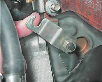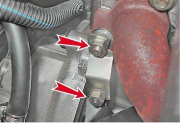 5. Снимаем ресивер (см. "Ресивер - снятие и установка"). 6. Снимаем топливную рампу (см. "Топливная рампа двигателя 2111 (1,5i)/11183 (1,6i) - снятие, разборка и установка"). 7. На двигателе 2111 (1,5i) ключом на 13 мм отворачиваем три гайки крепления и снимаем кронштейн.