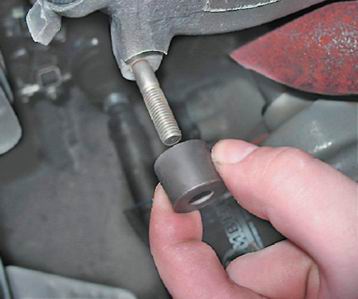 12. Снимаем правую штангу и дистанционную втулку со шпильки впускного трубопровода.