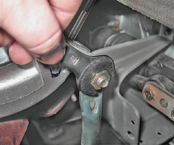 13. Ключом на 17 мм отворачиваем гайку верхнего крепления левой штанги и снимаем штангу.