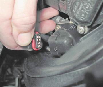 Регулятор холостого хода - проверка и заменаДля выполнения работы потребуются: - мультиметр (в режиме вольтметра и омметра); - отрезки проводов. Проверка 1. Подготавливаем автомобиль к выполнению работы (см. "Подготовка автомобиля к техническому обслуживанию и ремонту"). 2. Освобождаем фиксатор колодки жгута проводов и отсоединяем колодку от регулятора холостого хода.