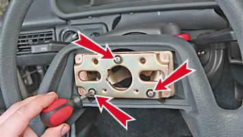 5. Той же отверткой отворачиваем три винта крепления контактной пластины выключателя звукового сигнала и отводим ее в сторону.