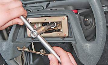 7. Торцовым ключом на 24 мм с удлинителем отворачиваем гайку крепления рулевого колеса на валу.