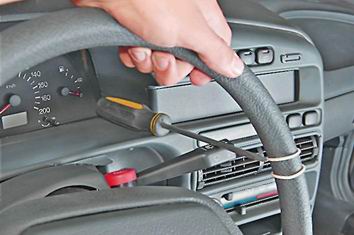 Рулевое управление - проверка технического состоянияДля выполнения работы потребуется помощник. Последовательность выполнения 1. Убеждаемся, что рычаг фиксации рулевой колонки поднят до упора. Пытаясь перемещать рулевое колесо в вертикальной плоскости, проверяем надежность крепления рулевой колонки механизмом фиксации. Если рулевая колонка перемещается, регулируем механизм фиксации (см. "Механизм фиксации рулевой колонки - проверка и регулировка"). 2. Пробуя перемещать рулевое колесо вдоль оси рулевого вала, убеждаемся в отсутствии люфта рулевого колеса на шлицах вала и вала в рулевой колонке. 3. Для проверки люфта в рулевом управлении поворачиваем рулевое колесо в положение, соответствующее движению прямо. На панель приборов укладываем шлицевую отвертку таким образом, чтобы ее лезвие располагалось рядом с ободом рулевого колеса. Поворачивая рулевое колесо направо до начала поворота колес (выбирая люфт), а затем налево и, ориентируясь по лезвию отвертки, мелом, отрезками проводов или иным способом отмечаем эти положения на ободе. Люфт не должен быть более 5° (или 18 мм) при измерении по наружной части обода. Замечание: Увеличенный люфт свидетельствует о необходимости поиска и устранения неисправности. Как правило, в первую очередь в рулевом управлении выходят из строя наконечники рулевых тяг.