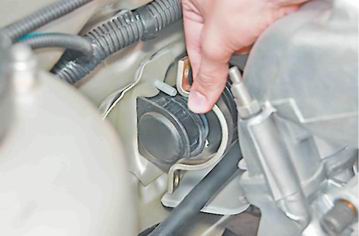 6. Немного сдвигаем рулевой механизм вперед и выводим вал приводной шестерни из зацепления с нижним фланцем муфты рулевого вала. 7. Повернув рулевой механизм валом приводной шестерни вверх, извлекаем его из моторного отсека через проем в левом брызговике.