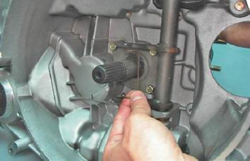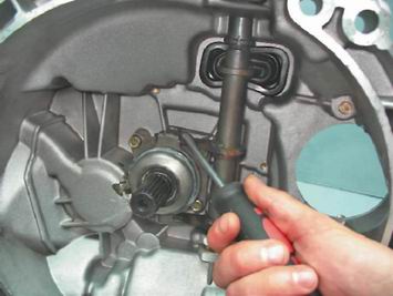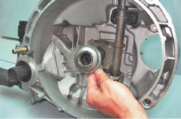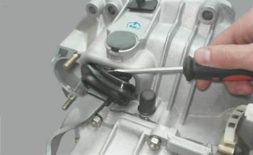 7. Для замены вилки и ее втулки, поддев отверткой, снимаем резиновый защитный чехол вилки выключения сцепления.