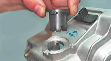 8. Вынимаем из отверстия картера пластмассовую втулку вилки.