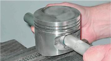 3. Прутком из мягкого металла подходящего диаметра выталкиваем поршневой палец.