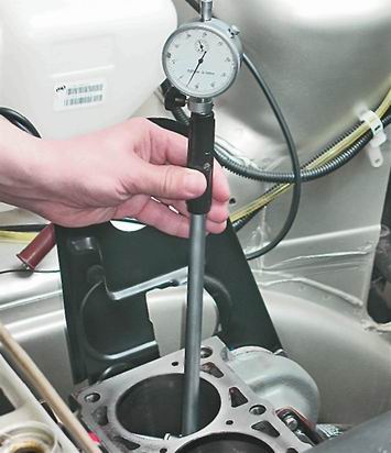 4. Снимаем поршень с шатуна. Подбор поршней к цилиндрам блока У новых двигателей зазор между поршнем и цилиндром составляет 0,025-0,045 мм и задается установкой поршней того же класса, что и цилиндров. Замечание: Как пользоваться нутромером - см. прилагаемую к инструменту инструкцию или специальную литературу. 1. Нутромером проверяем износ стенок цилиндров.