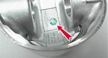 По диаметру отверстия под поршневой палец поршни делятся на три класса (1, 2, 3) - через 0,004 мм. По наружному диаметру поршни разбиты на пять классов (А, В, С, D, Е) - через 0,01 мм (измеряется в плоскости, перпендикулярной поршневому пальцу, на расстоянии 55 мм от днища поршня). По размеру поршни бывают номинальные и двух ремонтных размеров. Поршни номинального размера не маркируются. Поршни первого ремонтного размера изготавливаются с увеличенным на 0,4 мм диаметром и имеют маркировку в виде символа "∆". Поршни второго ремонтного размера имеют увеличенный на 0,8 мм диаметр и маркируются символом "□". На двигателе все поршни должны быть одной группы по массе. Поршни номинальной группы обозначаются символом "Г". Поршни с увеличенной и уменьшенной массой на 5 г обозначаются "+" и "-" соответственно. Класс пальца маркируется краской на его торце.