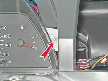4. С обеих сторон щитка крестовой отверткой отворачиваем два винта крепления щитка приборов к кронштейнам панели приборов.