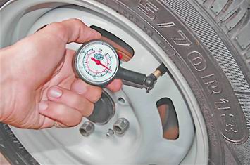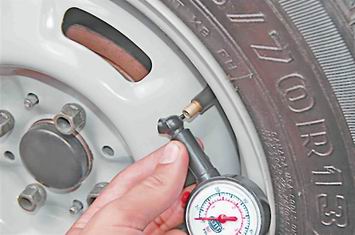 Шины - проверка давленияСовет: Проверяйте давление воздуха в шинах через каждые 500 км пробега автомобиля. Давление воздуха в шине автомобиля не постоянно. При повышении температуры окружающего воздуха давление в шине возрастает, а при понижении - падает. При небольших колебаниях температуры окружающего воздуха давление в шине меняется незначительно. Если перепад температур достигает 10-15°С, то необходимо проверить и, при необходимости, довести давление в шинах до нормы. Повышается давление в шине и во время движения автомобиля с большой скоростью и частыми маневрами. Зимой это практически незаметно. Холодный воздух и низкая температура покрытия дороги не позволяют шине нагреться. В летний период набегающий поток теплого воздуха плохо охлаждает шину, и ее температура начинает повышаться. Дополнительный нагрев шины происходит от разогретого солнечными лучами покрытия дороги. Все это может повысить давление в шине на 0,2-0,3 бар (20-30 кПа). Предупреждение! Давление в шине измеряется только тогда, когда ее температура равна температуре окружающего воздуха. Для выполнения работы потребуются: - манометр; - компрессор или шинный насос. Последовательность выполнения 1. Подготавливаем автомобиль к выполнению работы (см. "Подготовка автомобиля к техническому обслуживанию и ремонту"). 2. Отворачиваем защитный колпачок ниппеля.