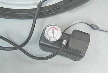 4. Возвращаем стрелку манометра на ноль и повторяем проверку. 5. Если давление в шине ниже 0,19 МПа (1,9 бар), то подкачиваем ее при помощи насоса или компрессора. Замечание: При подкачке контролируйте давление по показаниям манометра насоса или компрессора.